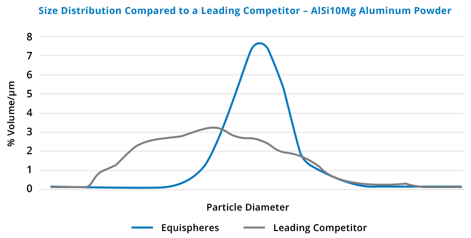 独自アトマイズ技術により実現した、均一な粒径、真球度ならびに安定した組成、加えて、表面の滑らかさおよび非常に薄い酸化被膜により、AMプロセスにおいて理想的なアルミニウム合金粉末です。プロセスの信頼性向上と優れた機械的特性に貢献します。