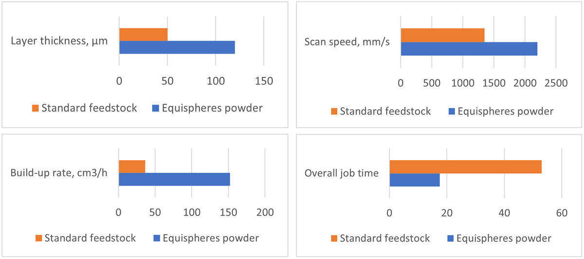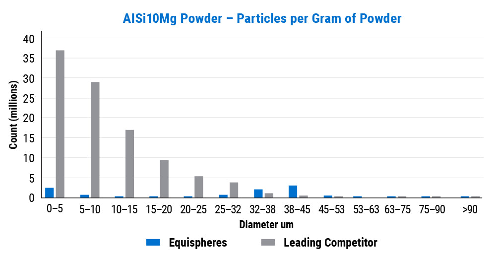 Equispheresのパウダーは、薄い酸化皮膜と低い水分吸着の両方を備えています。酸化層は従来の粉末の半分、水分吸着量は3分の1です。